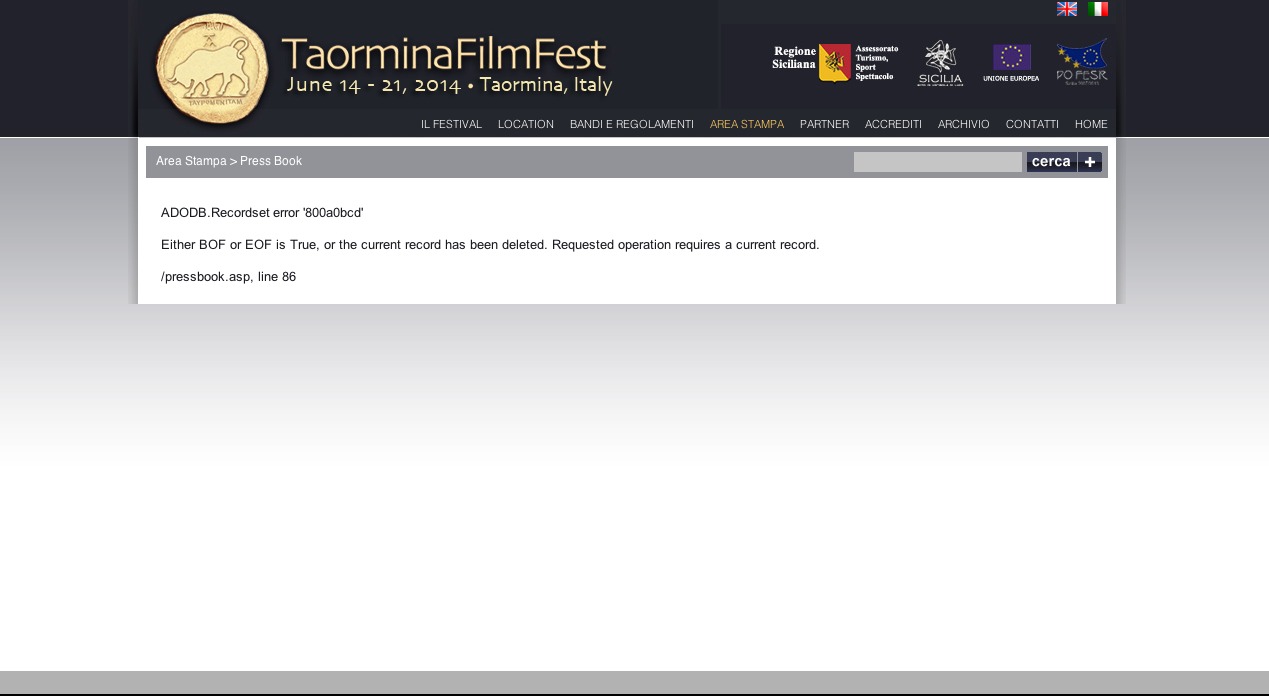 La situazione ad oggi è però molto lontana dalle aspettative create la scorsa estate. Manca il programma, il sito web del festival si blocca in alcune pagine (guarda qui), le poche news trapelate dai giornali locali parlano di ospiti poco rilevanti rispetto alle aspettative di una 60° edizione, il Palazzo dei Congressi non è agibile. L’intervista rilasciata da Tiziana Rocca, general manager Taormina Film Fest, al Festival di Cannes ci regala qualche news in più, “gli ospiti saranno tutte donne e saranno 6, una per ogni decade del Festival”, i nomi delle prime 3 già li sappiamo, Eva Longoria, Claudia Cardinale e Paz Vega, “le ultime tre saranno svelate il 9 giugno insieme al programma”.