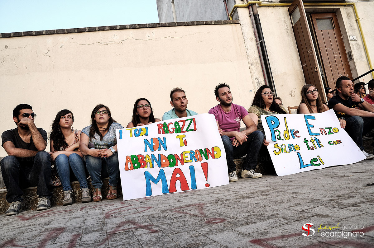 Preghiera, canto, immagini, emozioni e applausi hanno contrassegnato la manifestazione esterna. I giovani cresciuti sotto la guida spirituale di don Enzo hanno realizzato due cartelloni. Uno recava la scritta “I tuoi ragazzi non ti abbandoneranno mai”, l’altro “Padre Enzo siamo tutti con lei”. Prima della conclusione, gli organizzatori hanno invitato i presenti e l’intera cittadinanza ad associarsi alla fiaccolata, prevista per sabato 12 luglio, che partirà alle ore 20 dal santuario del Carmine. Intanto don Enzo, per sottrarsi alla pressione mediatica, momentaneamente ha lasciato la città ma ha fatto sapere che vi ritornerà presto.
