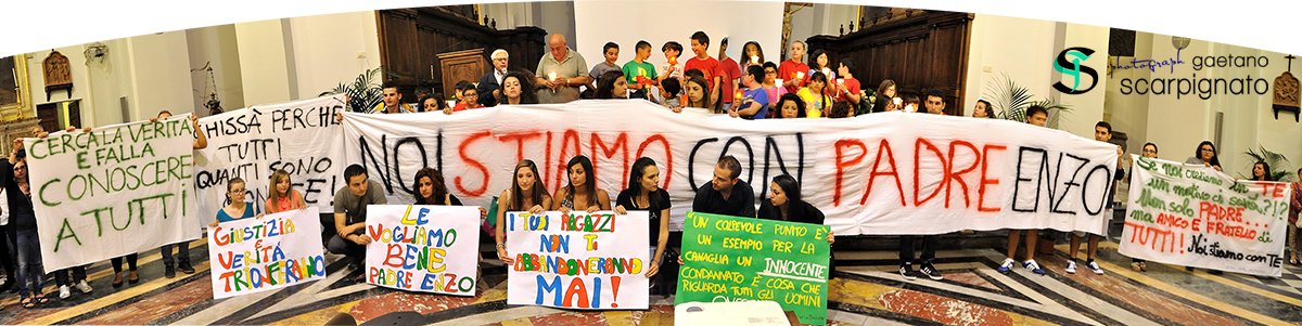 Preghiere, applausi ed emozione hanno contrassegnato la manifestazione. Per testimoniare la loro solidarietà e vicinanza a don Enzo, i giovani hanno realizzato diversi cartelloni che hanno fatto sfilare durante la marcia pacifica. In chiesa, poi, è stato letto un messaggio da parte degli stessi giovani. “In nome di tutti i giovani della comunità parrocchiale, cresciuti tra queste mura insieme a padre Enzo – dice il messaggio – respingiamo con forza qualsiasi accusa nei suoi confronti e ribadiamo la necessità di scavare ancora sulla vicenda per far luce sui dubbi e le contraddizioni emerse dai discorsi degli stessi accusatori. Possiamo gridare a gran voce – continuano i giovani nel loro messaggio – che padre Enzo non ha mai avuto, nemmeno lontanamente, atteggiamenti ambigui nei nostri confronti. Al contrario, ha sempre avuto un occhio di riguardo, ci ha sempre circondati di attenzioni e di protezione con sentimenti autentici e sinceri. A chi pensa che il nostro sostegno nei confronti di padre Enzo sia a priori e scevro da qualsiasi motivazione valida e condivisibile – conclude il messaggio – rispondiamo: se siamo qui un motivo ci sarà! Padre Enzo noi siamo con te!”.