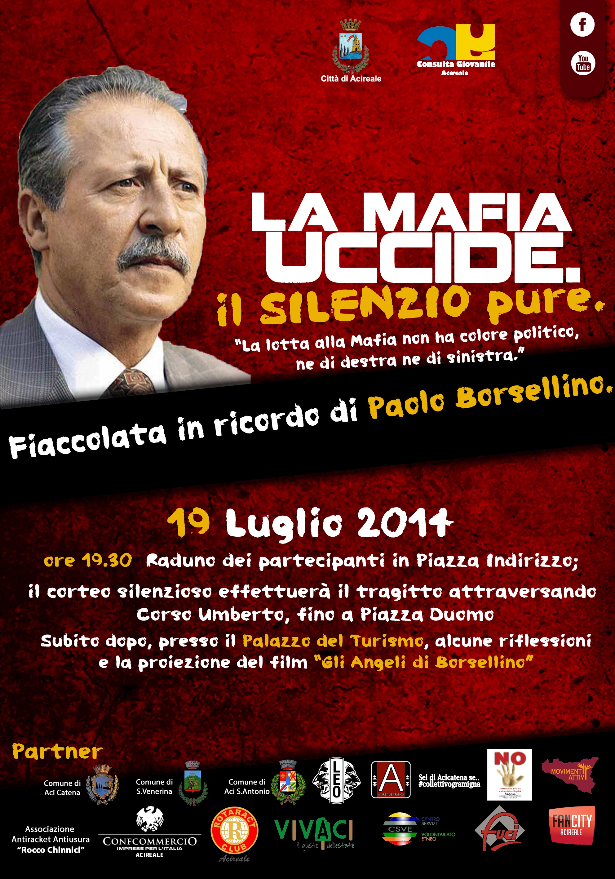 La mafia uccide, il silenzio pure. È questo il nome dell’evento che sarà organizzato ad Acireale sabato 19 luglio, per ricordare la morte di Paolo Borsellino, il magistrato ucciso dalla mafia nell’estate del ’92.