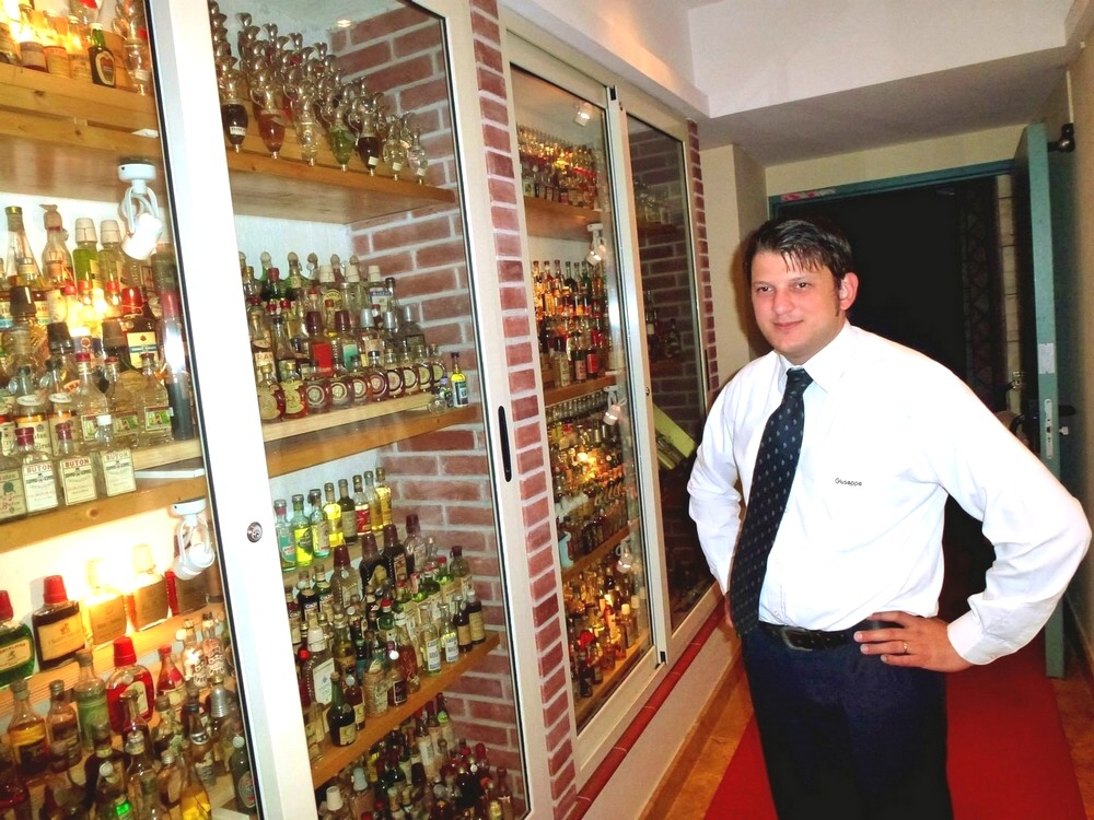 FOTO: i collezionisti del “Minibottles Show 2014” davanti all’Hotel D’Orange e Giuseppe Savoca con parte della sua ricca collezione di mignon