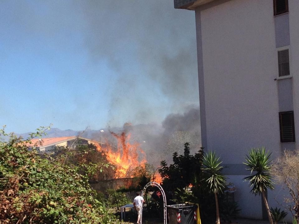 Presente anche una pattuglia della Polzia Locale del Comune di Riposto. Le fiamme si sono sviluppate nella zona di via Filosto nel quartiere Quartirello e le lingue di fuoco hanno rischiato di attaccare le vicine abitazioni.
