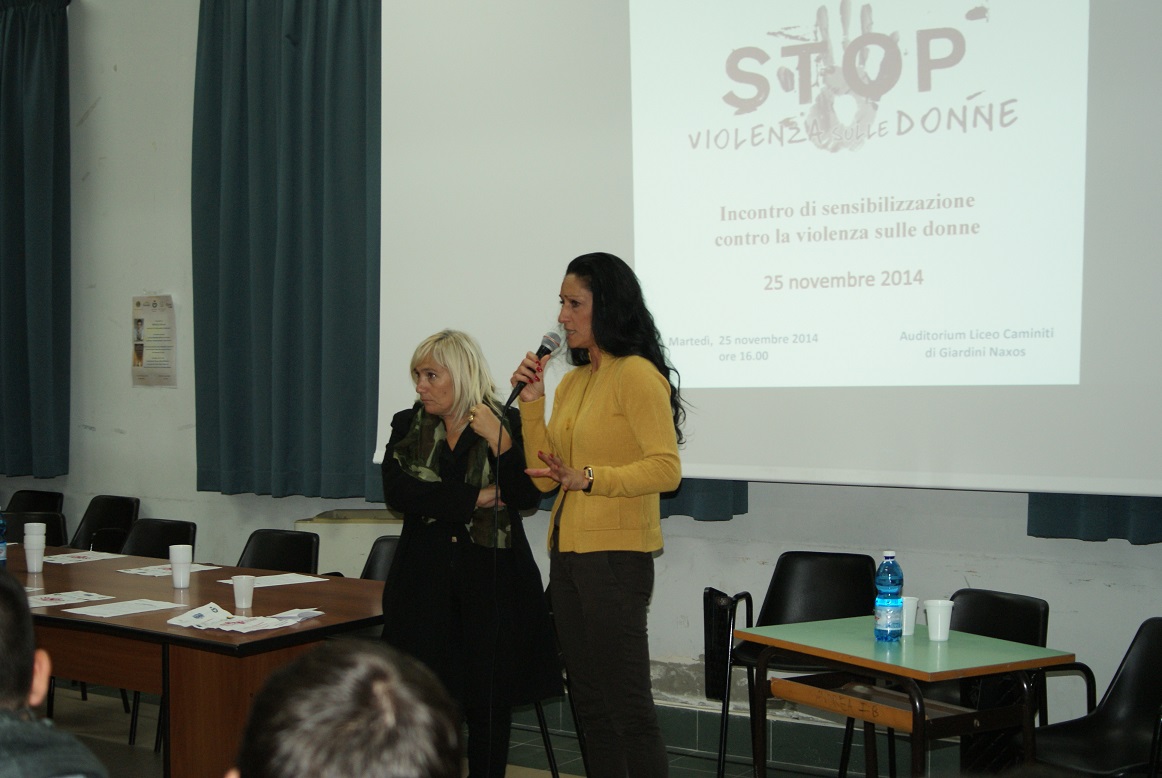 SONY DSCSONY DSCMartedì scorso, 25 novembre, in occasione della giornata mondiale contro la violenza sulle donne, il liceo Caminiti di Giardini Naxos, in collaborazione con l’assessorato alle politiche sociali del Comune di Giardini Naxos e l’associazione “Città delle donne”, coordinata da Fulvia Toscano, hanno organizzato un partecipatissimo incontro sul tema, presso l’auditorium del Liceo. Tutte le associazioni partners sono intervenute nel merito, con contributi tecnici ed esponendo la loro operatività sul territorio, in merito alle emergenze sociali connesse al tema della violenza contro le donne.