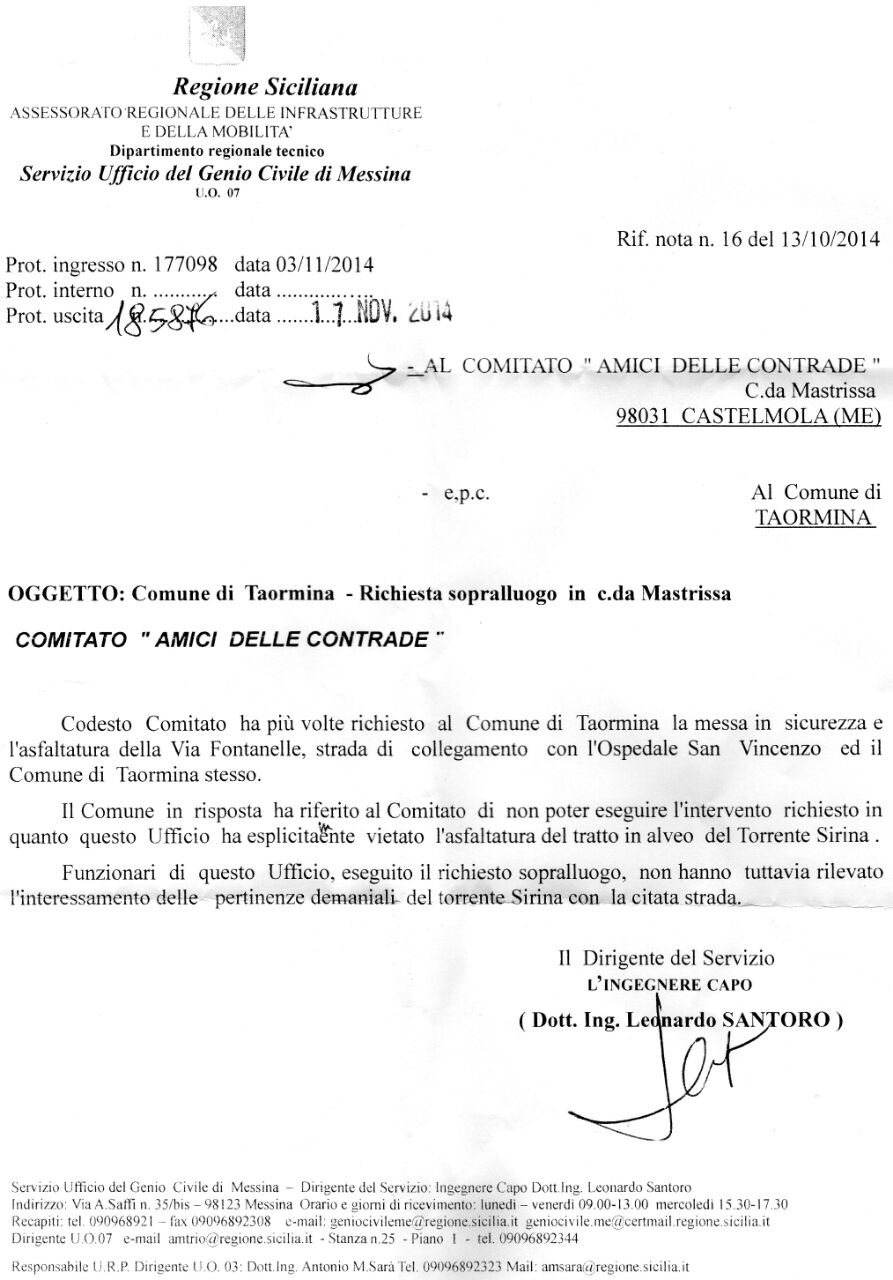Per la “capitale siciliana del turismo” sarà sicuramente un’“onta” l’essere stata sconfessata dal Genio Civile di Messina in merito all’asfaltatura di Via Fontanelle, ossia il tratto di strada di collegamento della popolosa contrada Mastrissa con l’ospedale di Taormina.