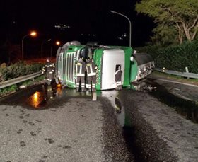 Autostrada parzialmente chiusa dalla scorsa notte nel tratto compreso tra il km 39 sino al km, 41,9, appena dopo lo svincolo di Giardini Naxos in seguito ad un grave incidente autonomo. Un’autocisterna che percorreva l’autostrada da Messina direzione Catania, a quanto pare in seguito alla foratura di un pneumatico, ha perso il controllo, scavalcando il guard rail, per poi adagiarsi su un fianco. Miracolosamente illeso il conducente del mezzo pesante, originario di Messina, che è rimasto leggermente ferito: soccorso da una ambulanza e accompagnato all’ospedale di Taormina ha riportato contusioni ed escoriazioni guaribili in sette giorni.