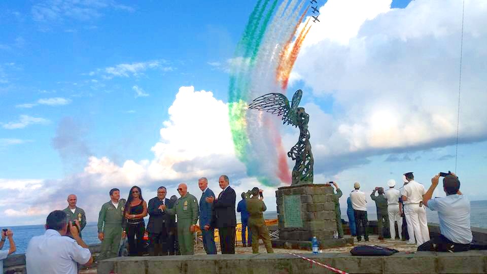 Non c’è stato nulla da temere da quegli apparentemente minacciosi nuvoloni bianchi e ben “scolpiti” che ieri pomeriggio aleggiavano sulla baia di Naxos: grazie ad essi, anzi, la spettacolare esibizione delle Frecce Tricolori dell’Aeronautica Militare Italiana è risultata ancor più pittoresca scenograficamente.