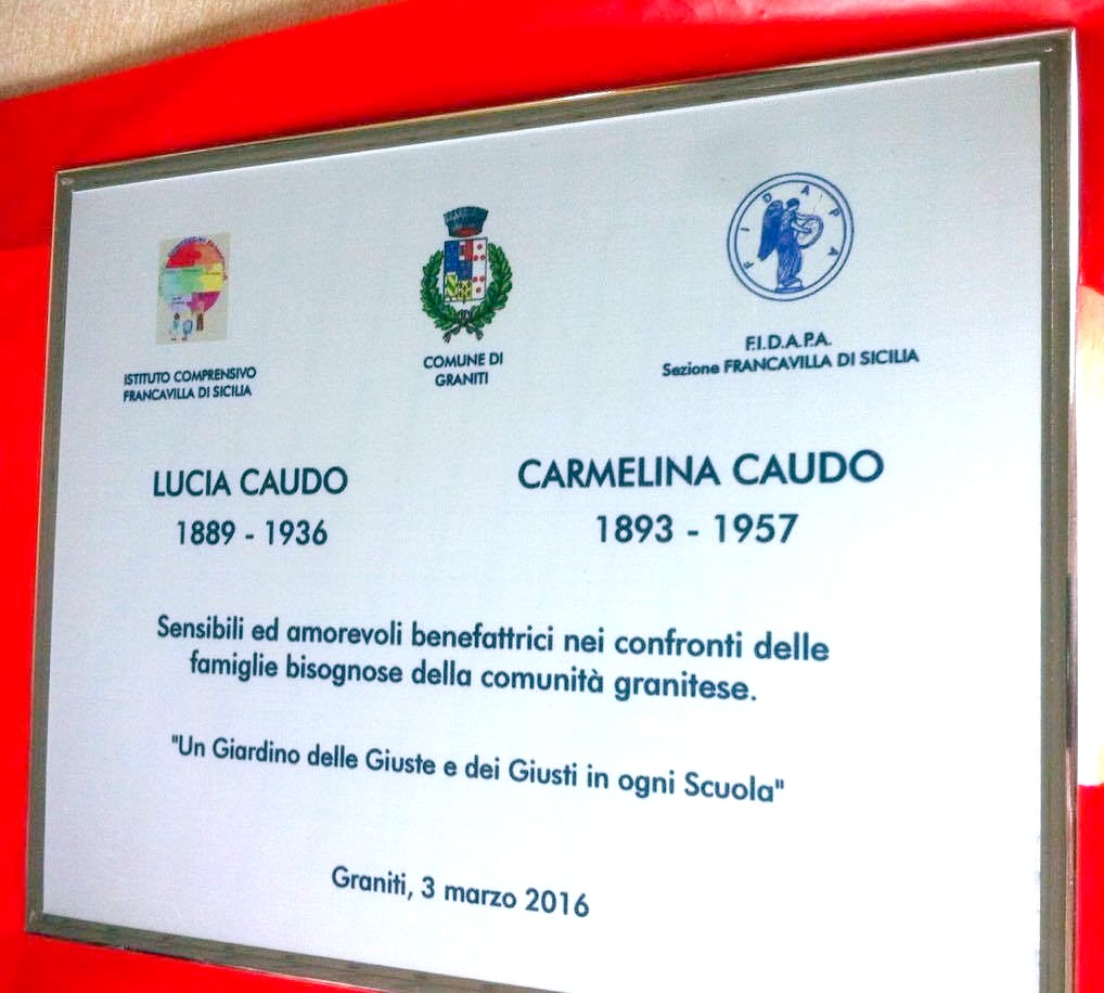 In perfetta sintonia con la “mission” del progetto “Un Giardino delle Giuste e dei Giusti in ogni Scuola”, coordinato a livello regionale dalla docente Pina Arena, pure le giovani generazioni di granitesi si sono così potute rendere conto che a fare la Storia non sono solo i cosiddetti “eroi” ed “uomini illustri” studiati sui banchi di scuola e “pompati” dai mass media, ma anche tante persone che, come le sorelle Caudo, col loro impegno silenzioso ed umile e sia pur in un ambito circoscritto di territorio, hanno segnato in positivo un’epoca.