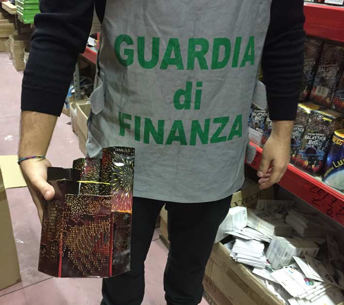 Tra i ripiani del deposito erano presenti anche scatole contenenti una grandissima quantità di artifizi pirotecnici, oltre 220 mila pezzi, detenuti illegalmente in quanto l’impresa non è risultata in possesso delle necessarie autorizzazioni di pubblica sicurezza.