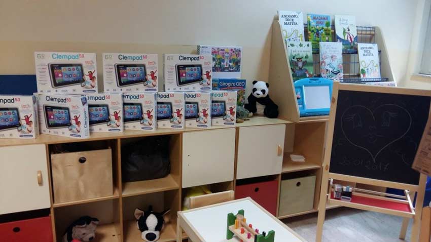 C’è anche un televisore per guardare i cartoni animati, dieci tablet toys di ultima generazione, e tanta attenzione al bisogno delle famiglie di rendere più serena la degenza ai piccoli.