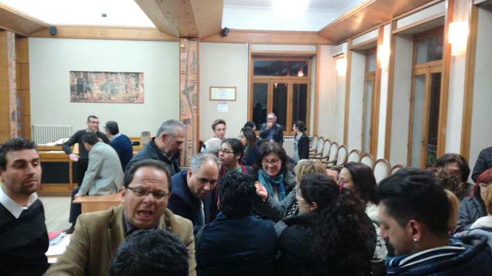 Al rientro la seduta riprende con 15 consiglieri presenti su 16. La maggior parte delle lavoratrici va via ma la seduta prosegue sull’argomento con di un’interrogazione di Leo Patanè che chiede maggior chiarimenti sui pagamenti alle cooperative.
