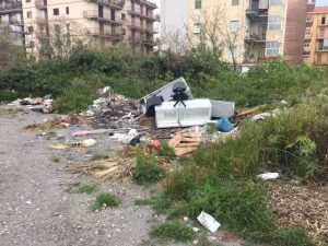 Al centro dell’area, circondata dalle auto che coraggiosamente vengono lasciate in sosta, primeggiano ingombranti di ogni tipo: dai profilati in ferro, agli arredi in disuso, divani e intere camere da letto. E poi pneumatici, sfalci vegetali misti a catrame e materiale edilizio.