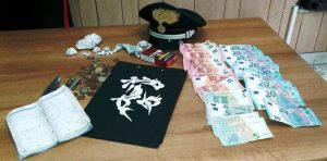 Bloccata l’autovettura si è proceduto a perquisirne l’abitacolo e l’occupante con il susseguente rinvenimento e sequestro di: 27 dosi termosaldate di cocaina – circa 15 grammi – 400 euro in contanti, tutti in banconote di piccolo taglio, nonché una agenda con annotati i nomi dei clienti e le relative cifre incassate dalla vendita della droga.
