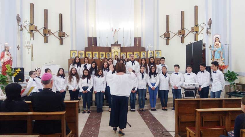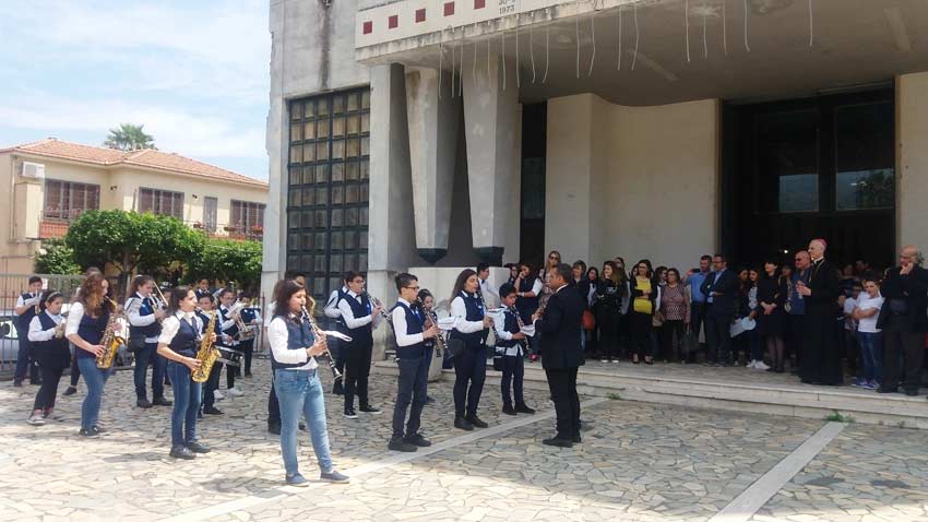 Grande festa infine con la Banda Musicale “Leonardo”, diretta dal professore Alfio Leonardi, di ritorno dalla sfilata lungo Corso Umberto a Randazzo, che ha accolto gioiosa il vescovo Raspanti.