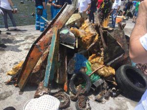 “Sono stati recuperati rifiuti di ogni genere. Tra questi 78 batterie stilo, una batteria per auto, una ruota e la corona di un motore, una porta in alluminio, vetroresina, lamiere e bottiglie in vetro – precisa il responsabile dell’iniziativa Antonino Leonardi -. Hanno aderito a questa meravigliosa giornata diverse centinaia di volontari che hanno ripulito la spiaggetta lato porto e la spiaggetta lato parcheggio, oltre 100 sub in acqua, cinque gruppi con oltre 100 scout, tantissime associazioni, Giacche verdi Sicilia, Legambiente, le Aquile della Protezione Civile di Misterbianco, la Clean sea life sezione di Roma. Da Riposto sono arrivate anche alcune barche a vela dell’associazione Vento di Grecale che, in collaborazione con la Lega Navale, hanno ripulito il mare dalle buste di plastica a pelo d’acqua. Ringraziamo l’assessore Fichera, le scuole sub e la delegazione di porto Santa Tecla e chi ci ha sostenuto rendendo possibile la manifestazione”.