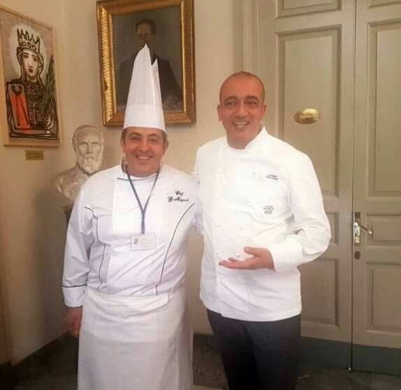 C’è tutto l’entusiasmo e la gioia per una chiamata che certamente non immaginava fino a qualche giorno prima: Gianluca Mignemi era accanto all’amico Due Stelle Michelin Pino Cuttaia a preparare per il gruppo dei consorti del G7 a Taormina in visita sull’Etna e a Catania.