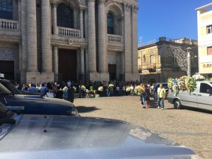 In piazza San Pietro ad accogliere la bara uno schieramento di fuoristrada. Salvo Natalello era un appassionato della montagna e del fuoristrada.