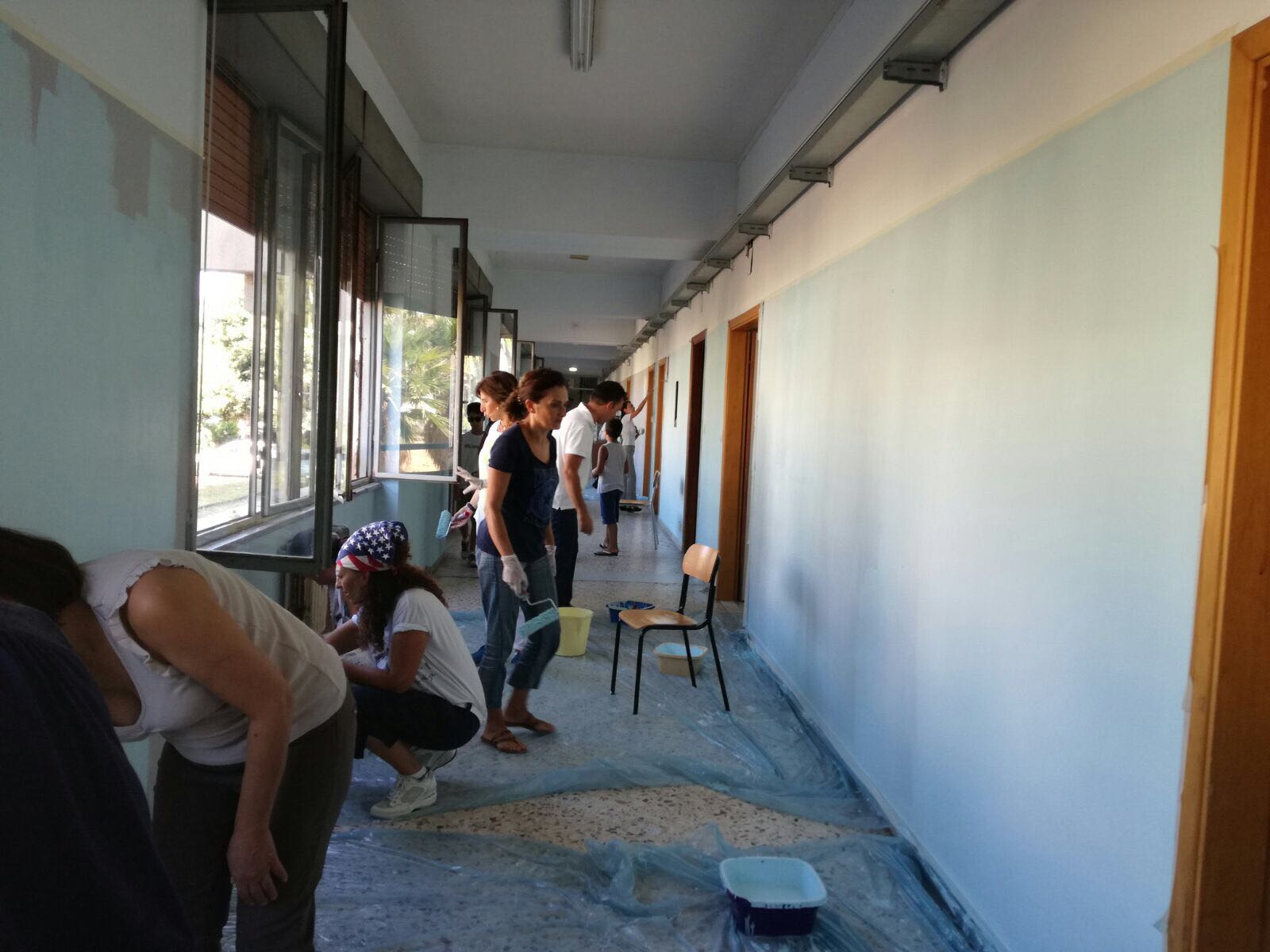In vista della ripresa delle attività didattiche del 14 settembre prossimo una trentina tra mamme e docenti sono impegnate nelle operazioni di tinteggiatura dei locali scolastici, aule e corridoi, e inoltre: riparazioni di infissi. Una vera e propria corsa contro il tempo considerati i tempi strettissimi. Docenti e genitori hanno attivato una cassa comune caricandosi tutte le spese per l’acquisto di pennelli e colori e tutto il materiale per l’esecuzione delle manutenzioni.