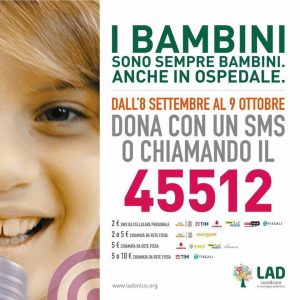 Tutte le compagnie telefoniche sostengono il progetto con il numero solidale 45512 attivo dall’8 settembre al 9 ottobre.