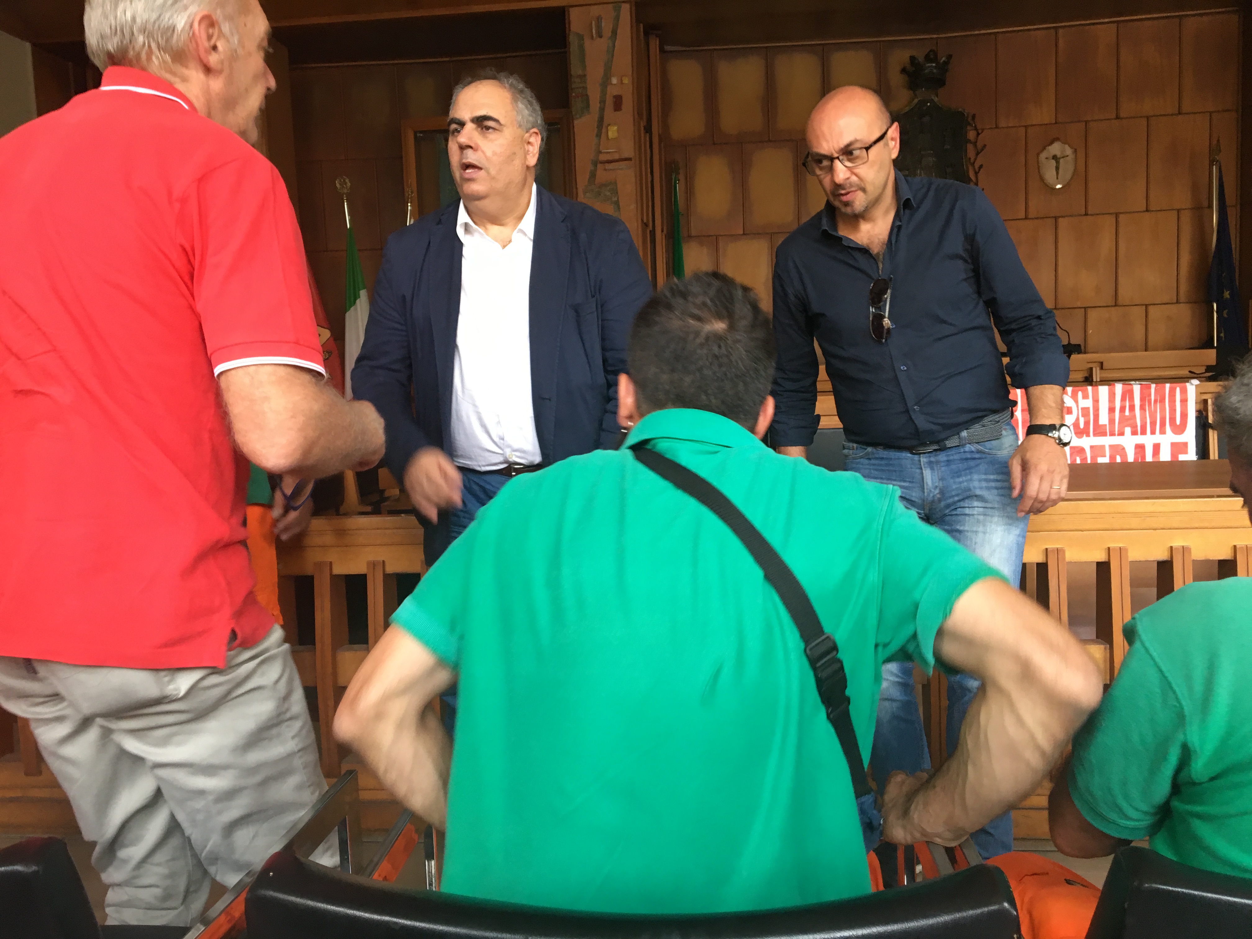 I lavoratori hanno pacificamente occupato l’aula consiliare ottenendo un confronto costruttivo con l’amministrazione (presenti il sindaco Angelo D’Anna, il vice, Salvo Vitale e l’assessore ai Servizi Ecologici, Giuseppe D’Urso).
