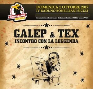 Aurelio Galeppini, in arte Galep. Se a molti questo nome non dirà molto, per gli appassionati di fumetti, soprattutto di Tex, il nome di Galep è associato ad uno dei grandi Maestri del fumetto. Un Maestro che, nell’arco di una carriera lunga 40 anni, ha dato vita grafica al personaggio di Tex, oltre ad aver dato vita, colori e grande dinamismo alle copertine del personaggio di punta della Sergio Bonelli Editore. Un Maestro indimenticabile, una autentica leggenda del fumetto Italiano. E proprio per celebrarne il secolo dalla sua nascita, i Bonelliani Siculi, per il loro IV raduno, hanno scelto di incontrare… questa leggenda! Dall’idea alla realizzazione, il passo è stato compiuto grazie al lavoro del direttivo dei Bonelliani Siculi, con Enzo Di Maria, Barbara Daniele, Giuseppe Strano, Tindaro Alessandro Guadagnini, Riccardo Renda, Ezio Salvagio e Matteo Belfiore a coordinare, amalgamare, proporre e far diventare una realtà unica le varie proposte giunte da soci, simpatizzanti ed amici.