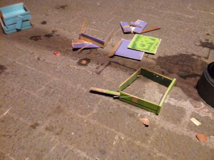 “Accade spesso – commenta la Piazzetta con un comunicato diffuso domenica attraverso Facebook – di stare un giorno intero in Piazzetta, andarcene, e ritrovare la mattina seguente tutto devastato. Però non lo diciamo sempre: per noia, per non essere ripetitivi, per non trasmettere incertezza, per non fare i piagnucoloni.