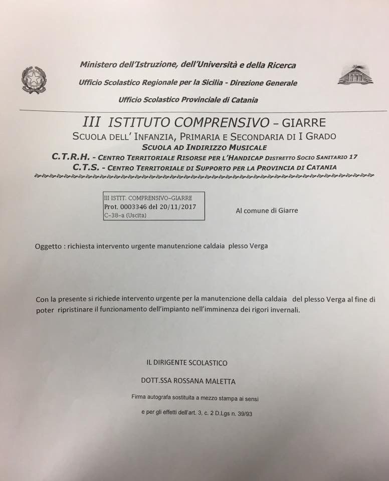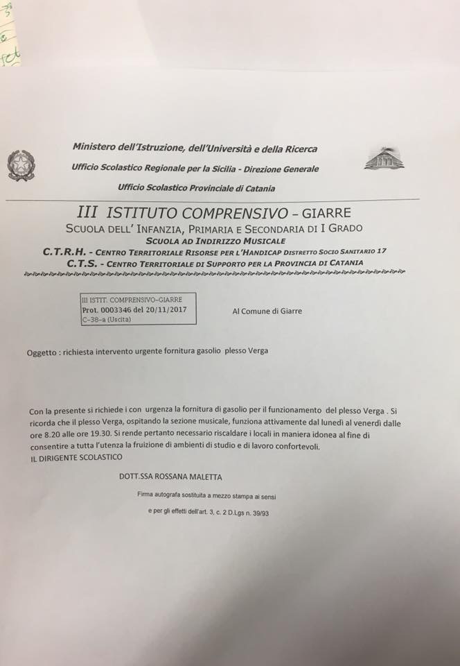 Inoltre, si esprimono le proprie riserve per il fatto che sono state formulate delle accuse di mancato ascolto delle istanze della scuola e dei genitori dopo solo due giorni lavorativi dall’invio di una PEC, soprattutto in considerazione del fatto che, ad una risposta interlocutoria generica di “immagine”, si è preferito agire per rispondere immediatamente alle giuste esigenze degli alunni che oggi saranno soddisfatte con la fornitura del gasolio necessario”.
