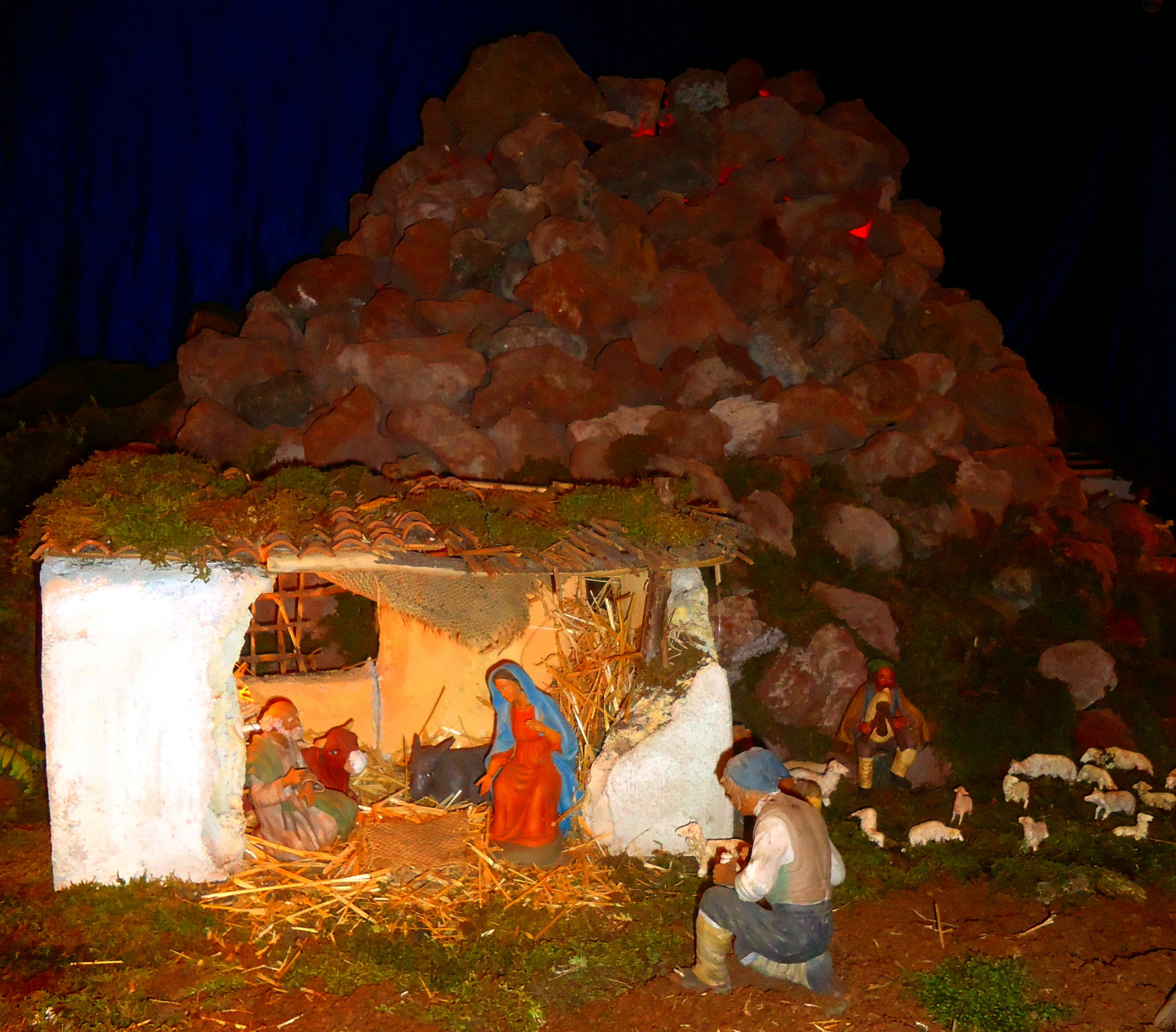 Pur tuttavia la sua ambientazione sa ugualmente di “antico” «perché – spiega Orazio Quattrocchi – ho voluto che le tradizionali capanne dei pastori si identificassero con le piccole costruzioni del centro storico ripostese, che costituivano le abitazioni dei nostri vecchi pescatori e dei commercianti di botti. E’ quindi un presepe che rimanda alla nostra storia ed alla nostra identità più autentica in quanto presenta una forte connotazione localistica nonché evidenti richiami all’inconfondibile natura conferita al nostro territorio dal vulcano Etna, che ho riprodotto proprio alle spalle della capanna di Betlemme. Queste caratteristiche vengono particolarmente apprezzate dal nostro arciprete Padre Agostino Russo, che ringrazio per l’ospitalità che dà ogni anno a questa mia “creatura” all’interno del principale luogo di culto di Riposto».