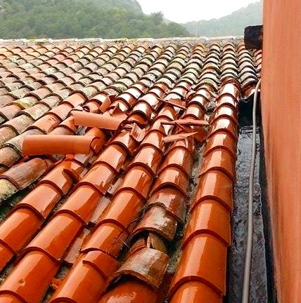 Le tegole del municipio di Francavilla spostate e rotte dal maltempo di qualche anno fa