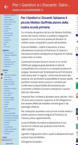 A pubblicare la notizia è il sito della scuola che il piccolo frequenta, la Grazia Deledda di Catania (foto). “Su richiesta dei genitori del piccolo Matteo alunno del nostro Istituto – scrive il dirigente scolastico – si pubblica il seguente appello in cui si ricercano potenziali donatori di midollo osseo compatibili a quello del bambino. I potenziali donatori devono recarsi in un centro Admo per eseguire gratuitamente un test di compatibilità, un prelievo di sangue, necessario per la tipizzazione ed immissione nella banca dati. Gli idonei saranno contattati per confermare la disponibilità alla donazione per consentire a Matteo di essere sottoposto all’intervento”.