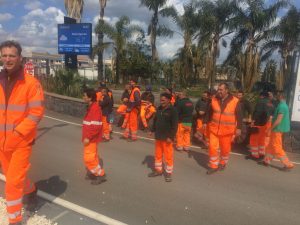 I lavoratori hanno poi ripreso le attività sospendendo la raccolta differenziata, raccogliendo e mischiando ogni tipo di rifiuti, nell’intento di eliminare i numerosi cumuli di rifiuti presenti in diversi punti della città, nelle frazioni e nei quartieri popolari.