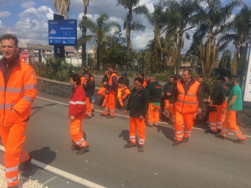 E nella tarda mattinata i dipendenti della Dusty hanno proseguito la protesta in via Luminaria dinanzi la barriera autostradale di Trepunti, nell’intento di bloccare i mezzi della ditta ecologica che per liberare la città dalla montagna di rifiuti ha incaricato un gruppo di lavoratori del cantiere di Misterbianco.