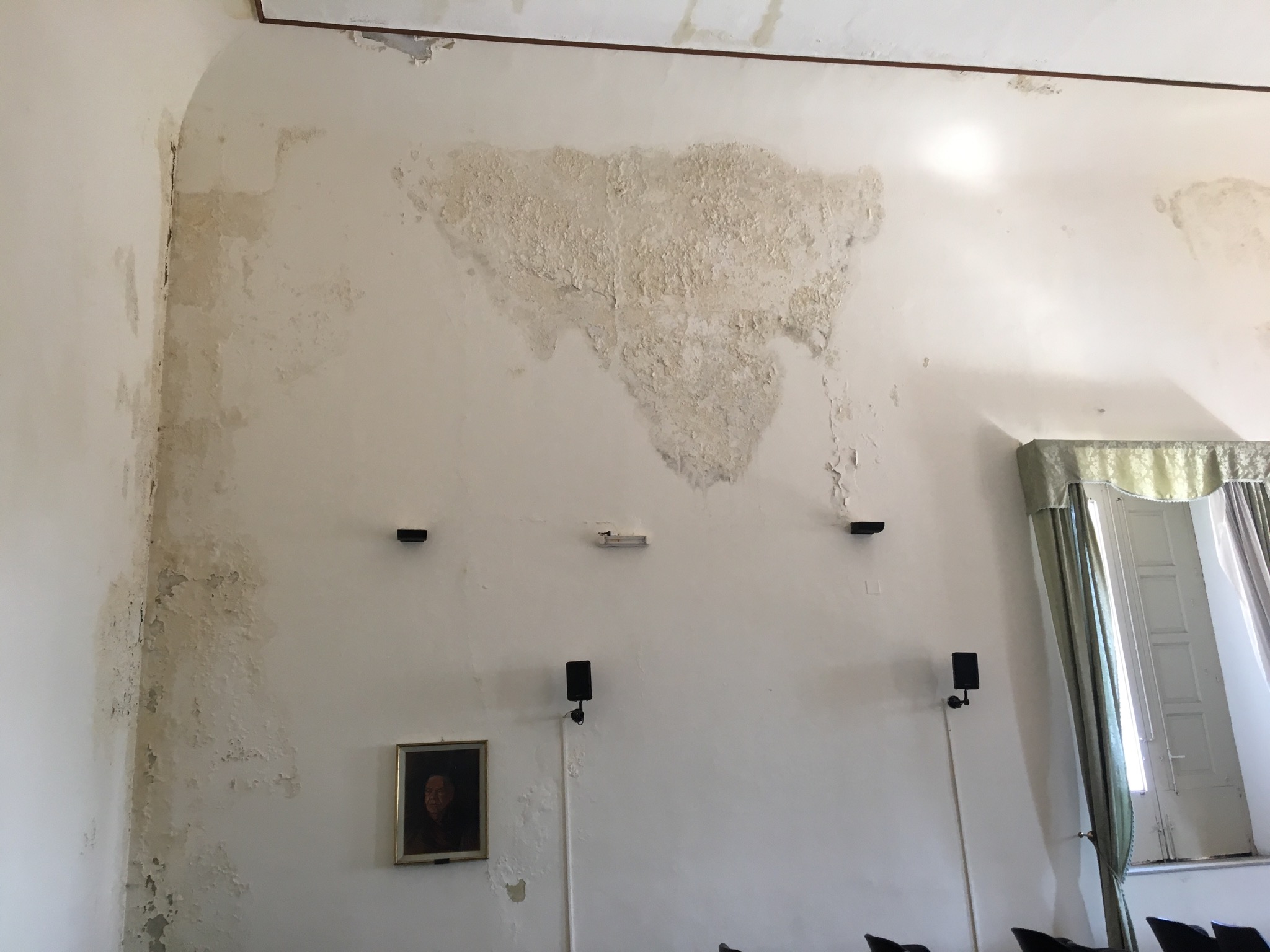 Alla fine, in assenza di manutenzioni, i danni strutturali sono aumentati a dismisura: le infiltrazioni stanno pesantemente logorando le pareti dell’edificio dove si notano fenditure e scostamenti di enormi porzioni di intonaco. Al primo piano del palazzo il copione è pressochè analogo. La sala “Rosario Romeo” rischia l’inagibilità: sul tetto e sulle pareti squarci provocati dall’umidità rischiano di danneggiare anche gli arredi interni. Già nel recente passato, la prestigiosa sala è stata interdetta al pubblico per via di alcuni allagamenti verificatisi in occasione di intense piogge.