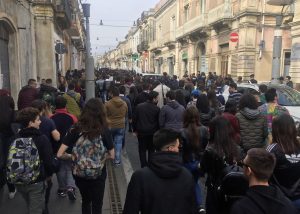 Un fiume di studenti delle scuole del territorio ha attraversato il corso Italia partendo da piazza San Pietro a Riposto, alla volta di Giarre,  per gridare con forza il proprio no alla smobilitazione dell’ospedale di Giarre chiedendo la riattivazione del pronto soccorso in seguito alla rifunzionalizzazione del presidio ospedaliero di via Forlanini.