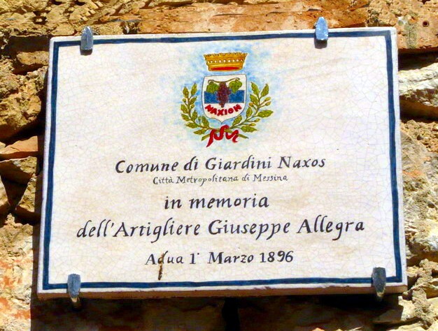 Centoventidue anni fa, ossia l’1 marzo del 1896, Giardini Naxos perdeva il suo giovanissimo figlio Giuseppe Allegra, militare morto poco più che ventenne in Abissinia nella battaglia di Adua. Era uno degli artiglieri siciliani della “Batteria Masotto”, annientata dalle forze nemiche. Nei giorni scorsi il suo Comune ha voluto immortalarne il ricordo dedicandogli una lapide collocata all’ingresso dell’Istituto Scolastico Comprensivo giardinese, ubicato in contrada Mastrociccio.