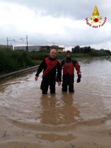 Squadre di vigili del fuoco sono arrivate in supporto dai comandi provinciali di Siracusa e di Messina per gestire l’emergenza maltempo. Nella foto a sinistra l’intervento della squadra sommozzatori nella zona di Gelso Bianco a Catania dove sono stati soccorsi alcuni automobilisti sommersi dall’acqua.