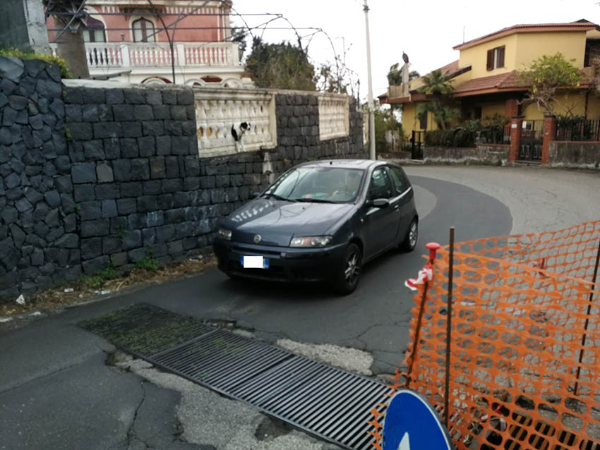 Da settimane si sfiora la tragedia in via della Regione per via di una grata rotta che si trova nel bel mezzo di una curva cieca che si trova all’altezza del civico 167.  I veicoli che procedono verso Milo non hanno visuale e da quella strada scendono spesso autotreni carichi.