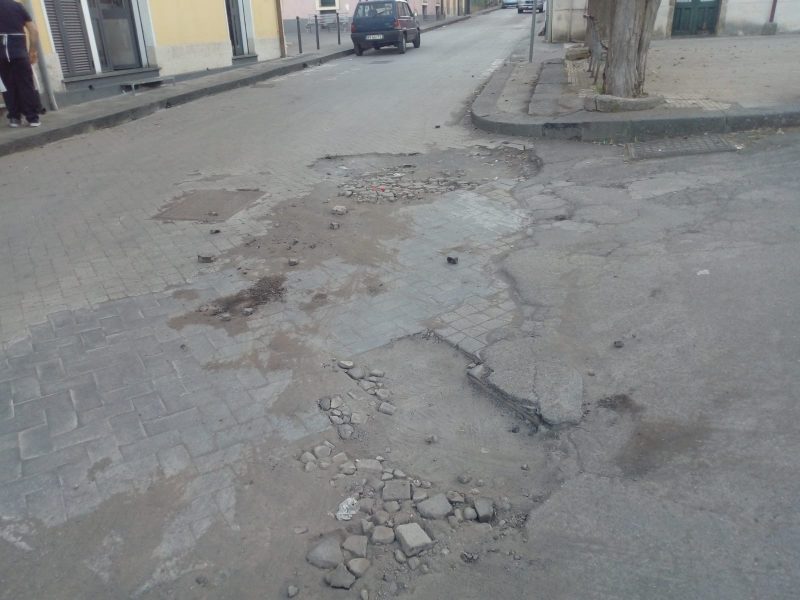 Al centro di Puntalazzo la via Umberto, la nevralgica arteria della frazione, versa da mesi in condizioni precarie sempre più evidenti. Tra l’altro, la paviementazione in mattonelle di asfalto richiede interventi celeri di ripristino, altrimenti il degrado sarà rapidissimo e il danno da riparare sarà sempre più ingente, ogni giorno che passa. Cosa aspettiamo per intervenire? Si tratta di piccole opere di manutenzione, estremamente preziose per chi abita questi luoghi spesso dimenticati.
