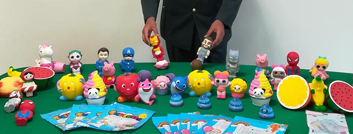Durante le operazioni i militari hanno sequestrato giocattoli e gadget contraffatti, riproducenti noti personaggi dei cartoni animati (Spiderman, Batman, Superman, Thor, Ironman, Capitan America, Peppa Pig, L.O.L. e My Little Pony).