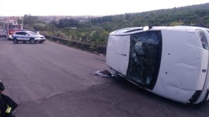 Mascali, incidente autonomo sulla via Giarre-Nunziata: auto si ribalta: intervento dei Vigili del fuoco
