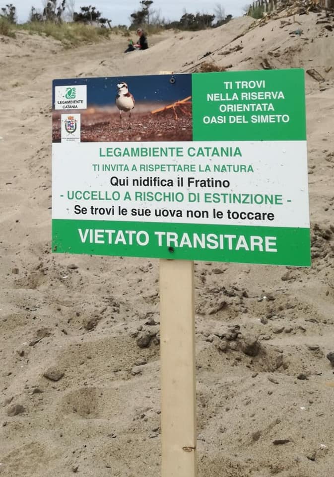 L’apposizione dei cartelli informativi su questo tratto di litorale è stata realizzata con il supporto del direttore della riserva orientata Oasi del Simeto, dott. Gaetano Torrisi, delle guardie ambientali della riserva e grazie alla consulenza del dott. Renzo Ientili del Cutgana e del dott. Giovanni Spinella, referente regionale Comitato Nazionale Conservazione del Fratino, e ancora grazie al “Progetto Eric” che ci ha aiutato nell’acquisto dei cartelloni, alla grafica Milena Nicolosi che li ha realizzati e ai volontari che hanno collaborato alla pulizia del tratto di spiaggia.