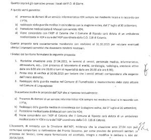Ulteriore argomento che vogliamo analizzare è l’esecuzione della Delibera ASP 664/2015 a seguito dell’incontro del 25 maggio 2015 tra Assessorato Regionale alla Salute, vertici dell’ASP e Conferenza dei Sindaci, ed in particolare i punti che riguardano l’attivazione dell’ambulatorio infermieristico H 24 nei locali dell’ex P.S. in raccordo con il PTA e la postazione del 118 con ambulanza medicalizzata nel Comune di Riposto (Doc. all. 2)
