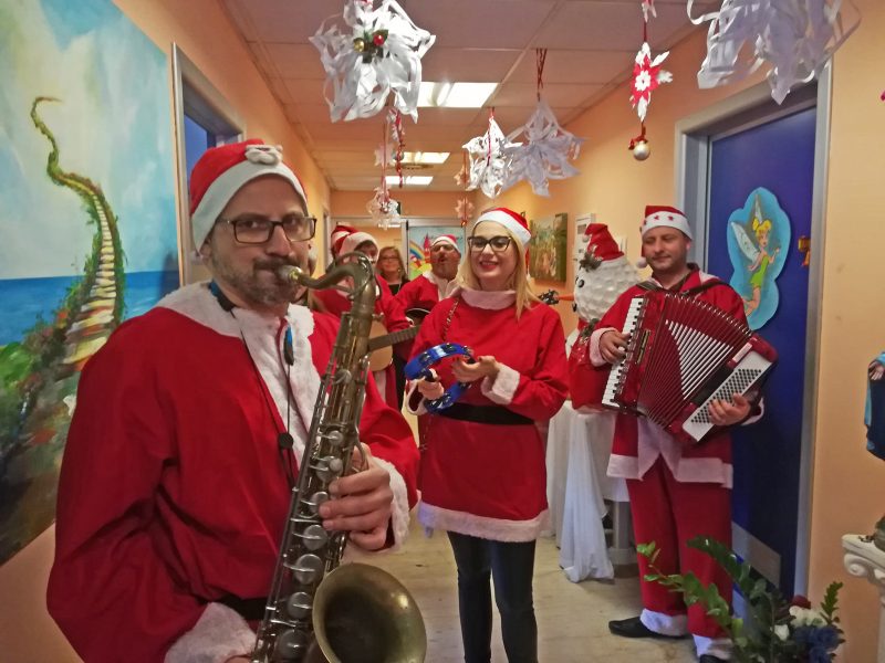 Con i volontari, com’è tradizione, anche i musicisti che affiancano la Lilt durante l’anno e che in occasione del Natale si riuniscono nella “Lilt band”. I volontari hanno attraversato le diverse corsie ospedaliere regalando agli ammalati pandori e biscotti. La “Lilt band” ha proposto i canti della tradizione natalizia e siciliana con accompagnamento di chitarra, sax e tamburello.