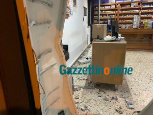 La deflagrazione ha arrecato danni all’interno del tabacchino (muri perimetrali e una vetrata separatrice, parte del bancone e una fotocopiatrice). Sigarette e denaro sono stati trafugati.