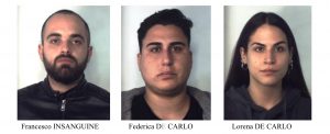 I Carabinieri del Nucleo Operativo della Compagnia di Catania Piazza Dante hanno arrestato nella flagranza Francesco Insanguine di anni 26, Federica De Carlo di anni 28 e la sorella Lorena De Carlo di anni 21, poiché ritenuti responsabili del concorso in detenzione finalizzata allo spaccio di sostanze stupefacenti, nonché detenzione illegale di arma comune da sparo e munizioni.