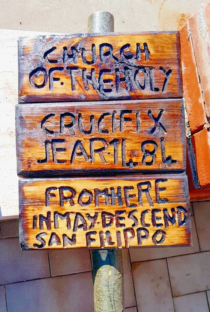 La tabella, in lingua inglese, indicante la chiesa del SS. Crocifisso