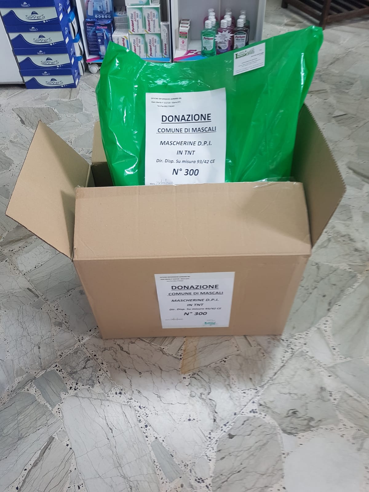 Sono 300 le mascherine in tessuto tnt (dispositivi di sicurezza individuali) che la ditta giarrese “Officine Leonardi” ha donato al Comune di Mascali per fronteggiare l’emergenza epidemiologica.