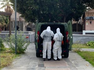 Le operazioni di bonifica, oltre al palazzo Vigo di Torre Archirafii, sono poi proseguite nei locali del municipio di via Archimede e del vicino palazzo Cosentino, il comando della polizia locale, l’Ufficio tecnico, la biblioteca comunale e i servizi sociali, la palestra comunale Livatino, Ufficio Anagrafe, la sede operativa del 118 di via Roma nord e la Guardia medica; i centri incontro anziani di Torre Archirafi e di via Archimede, il mercato ittico di corso Italia e il plesso di Archi che ospita gli Scout.