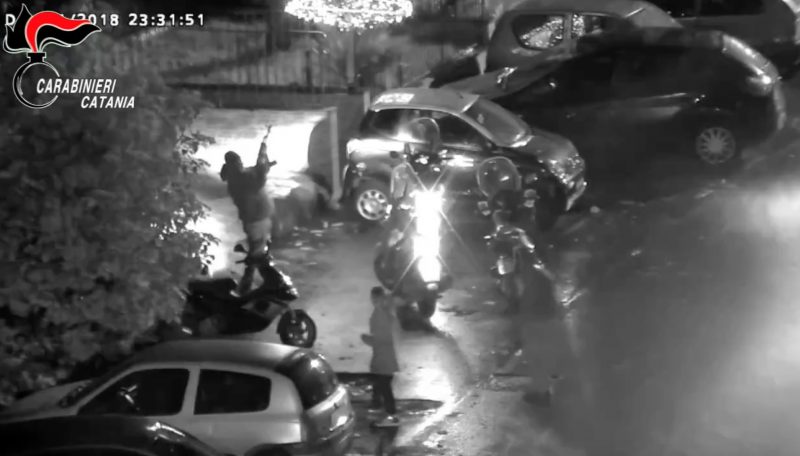 Inoltre in occasione dei festeggiamenti del 31 dicembre 2018, sono stati video ripresi i momenti in cui proprio Schillaci Lorenzo Michele, con Calabretta Mario Maurizio e Spampinato Giambattista (entrambi responsabili dell’importante piazza sita al civico 81 della via Capo Passero), esplodevano diversi colpi di arma da fuoco sia con kalashnikov che con una pistola, noncuranti, tra l’altro, della presenza di più persone, tra le quali un bambino, mentre il pusher della piazza continuava a spacciare ai clienti incuranti degli spari.