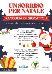 L’iniziativa “Un Sorriso per Natale” nella sua dodicesima edizione, si propone infatti di effettuare una raccolta di giocattoli da destinare interamente ai bambini delle strutture esistenti nel nostro territorio.