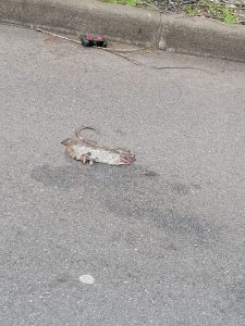 Potranno essere mai rifiuti abbandonanti lì da persone che abitano là vicino? Sicuramente no, almeno crediamo: la strada dove c’è casa è l’immagine pubblica del luogo in cui viviamo, parla di noi, chiunque si vergognerebbe ad invitare un amico o un parente a casa sapendo che la prima cosa che vedrà è una montagna di spazzatura. Né tantomeno si può credere che ci siano persone rassegnate a vivere nel degrado e nella sporcizia che attira topi. A proposito, un topo è rimasto schiacciato da un’auto e completa il quadro degli orrori.